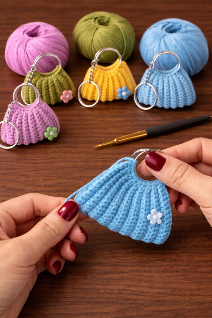 You will also need a yarn needle for sewing pieces together and weaving in ends. Finishing details carefully enhances the professional look of your miniature bag. Clean finishing ensures that your keychain remains durable even with daily use.