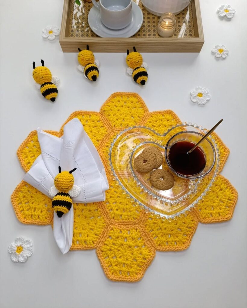 Seasonal decorations also benefit from American crochet in a honeycomb pattern.. Whether in neutral tones or vibrant colors, the design adapts beautifully to various themes.