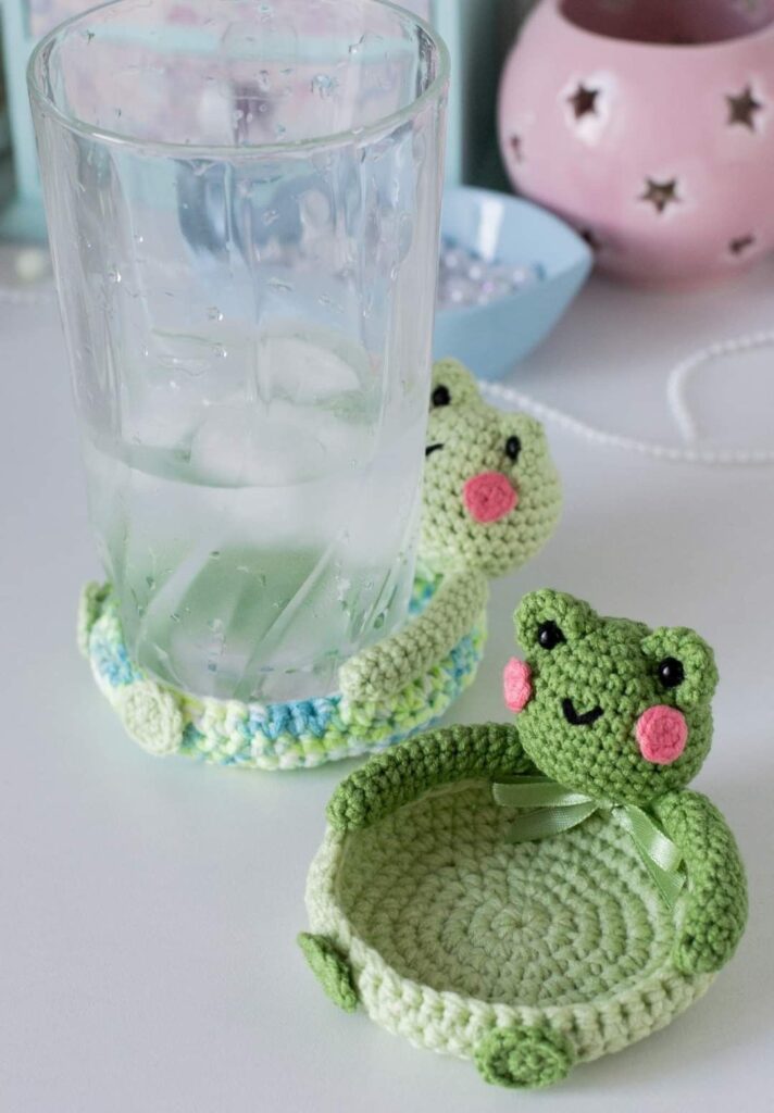 Learning through a Crochet frog coaster- Step by Step Tutorial comes with many benefits beyond just making a coaster. First, it helps you practice basic crochet skills such as working in the round, increasing stitches, and attaching parts. These are essential techniques that build a strong foundation for future projects.