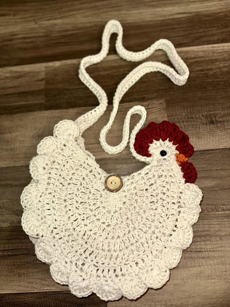 Finally, sturdy straps or handles are essential. Reinforced crochet straps or attached fabric handles provide strength and comfort, ensuring that the Crocheted chicken bag is practical as well as decorative.
