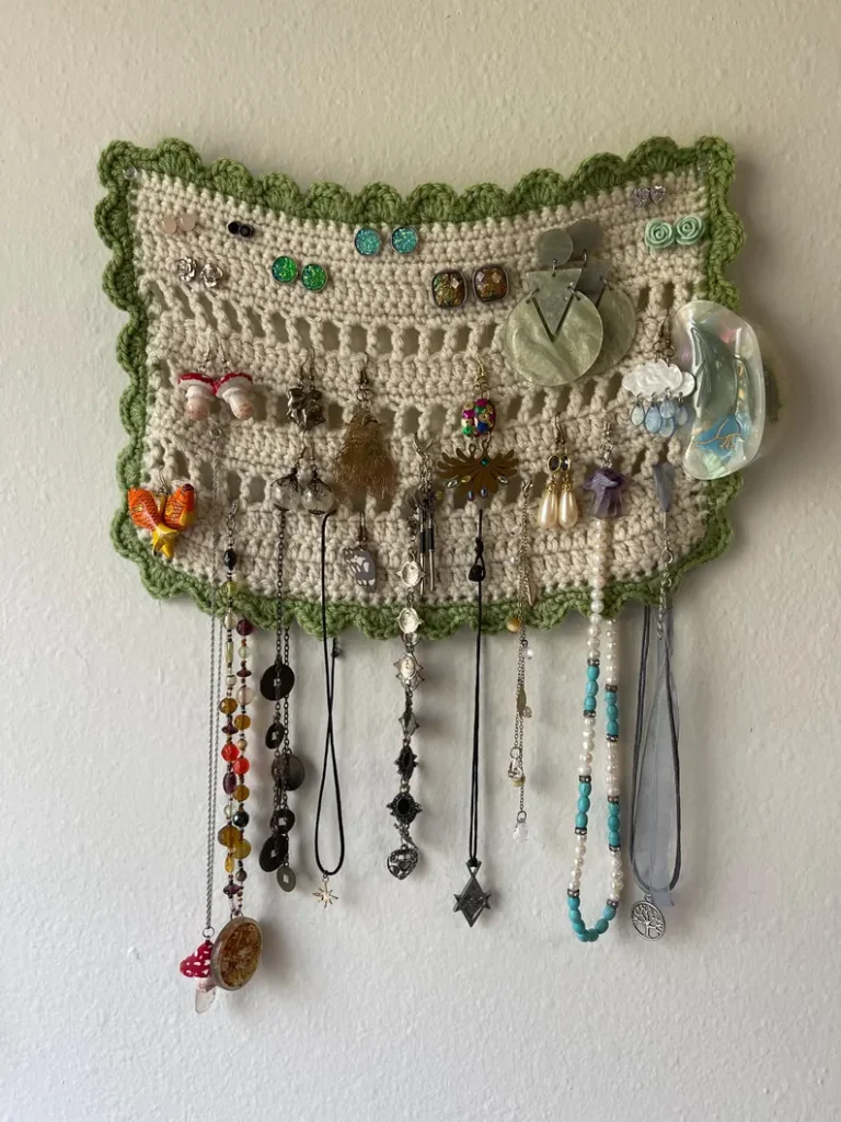 A Crocheted jewelry holder for hanging/Ready-made crocheted jewelry display is a versatile, practical, and creative solution that suits many lifestyles. We hope this guide helped you understand its value and inspired new ideas. Please leave a sincere opinion and share your suggestions, as your feedback is important and always welcome.
