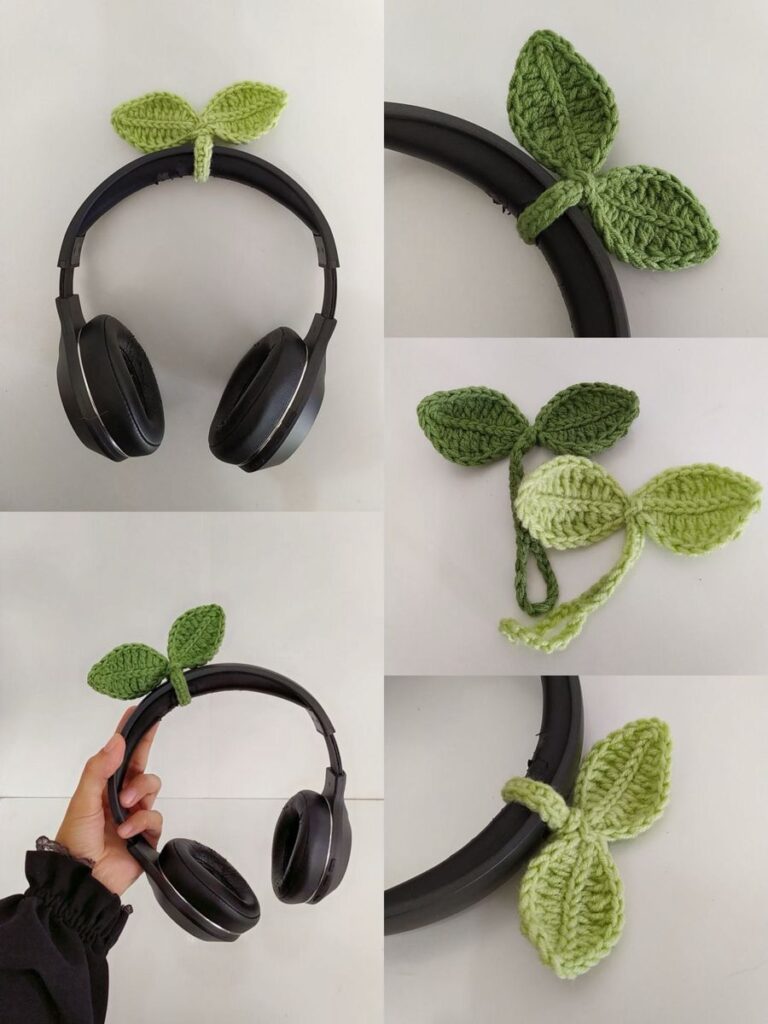 Customization options allow each Crocheted Leaf for Headphones to reflect personal style, from color variations to decorative details.