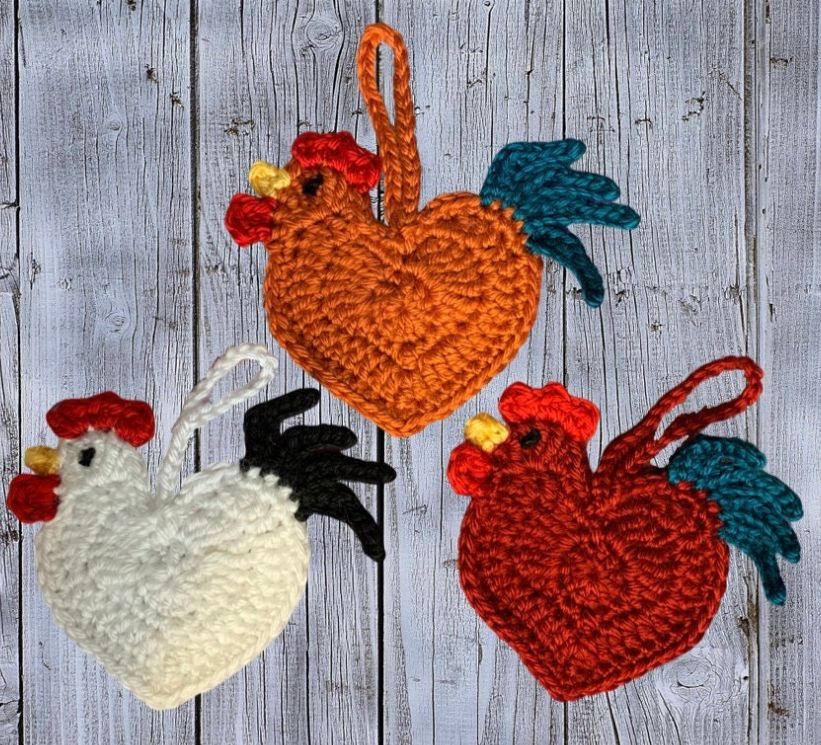 Color choice plays an important role in expressing charm. Bright reds, warm yellows, and earthy tones bring Crocheted rooster ornaments to life and highlight their playful personality.