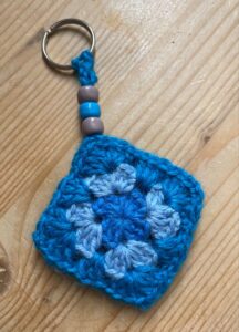 Testing your yarn and hook combination before starting the Cross-shaped keychain made from a recycled tin lid and crochet stitch tutorial can help ensure that the stitches are the correct size.