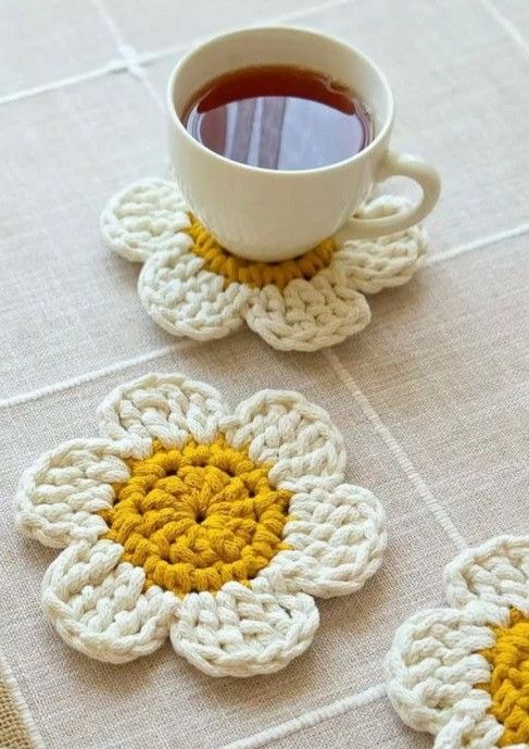 Another important concept of the Daisy crochet coaster is versatility. The size can be adjusted easily, allowing the coaster to fit different types of cups or even be repurposed as small decorative mats.