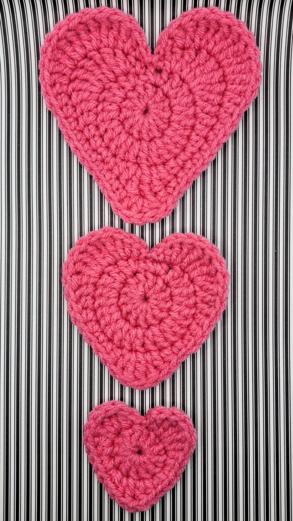 Using thicker yarn and a larger hook will increase the size of your Easy crochet heart without altering the pattern significantly.