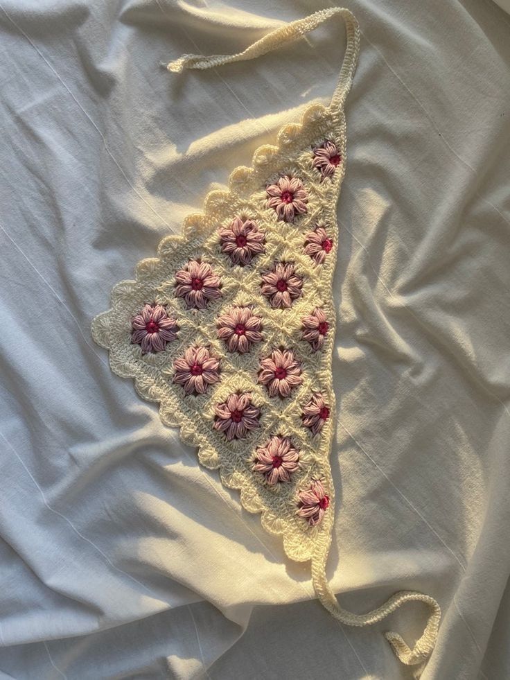 An Elegant floral crochet bandana should be gently hand washed and laid flat to dry to preserve its shape and details.