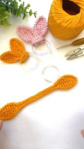 Next, crochet two separate ear pieces. Start with a chain, work single crochets across, and shape the ears by decreasing slightly at the top. Make sure both ears are symmetrical in size and shape.