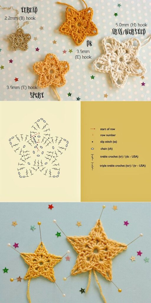 Adjusting hook size and yarn weight allows you to create stars in various sizes.