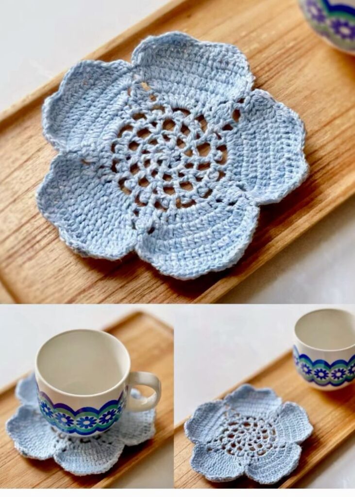 The Lotus crochet coaster is not limited to table protection; it is also a decorative element.