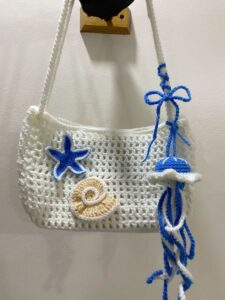Overall, the concept behind this crochet keychain is to blend ocean beauty, kawaii design, and handmade warmth into one compact and lovable item.