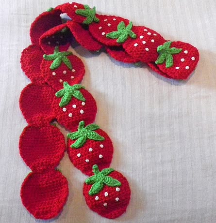 Is a Strawberry scarf, a fun crochet idea. good for gifts