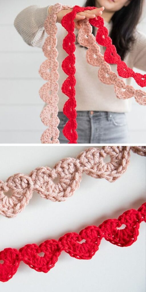 Hook size affects the final appearance of each heart. Smaller hooks create tighter stitches, resulting in a more defined String of Hearts Crochet Garland.