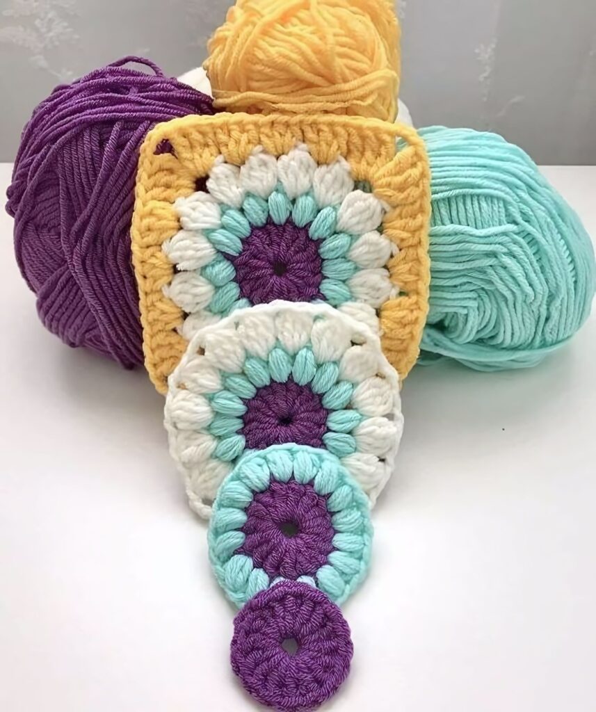 Each round adds texture and depth to the square. The center often uses puff or cluster stitches, while the outer rounds form clean, structured edges. This contrast creates a beautiful visual effect.