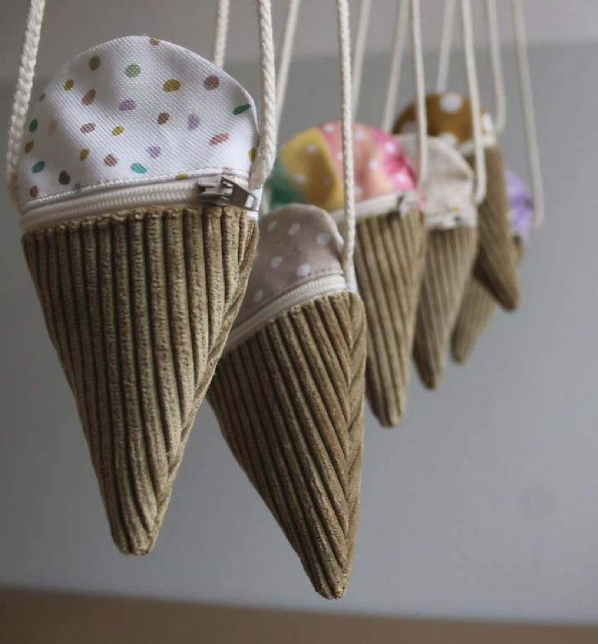 A zippered bag shaped like an ice cream cone is a wonderful example of how creativity and practicality can work together in handmade design.