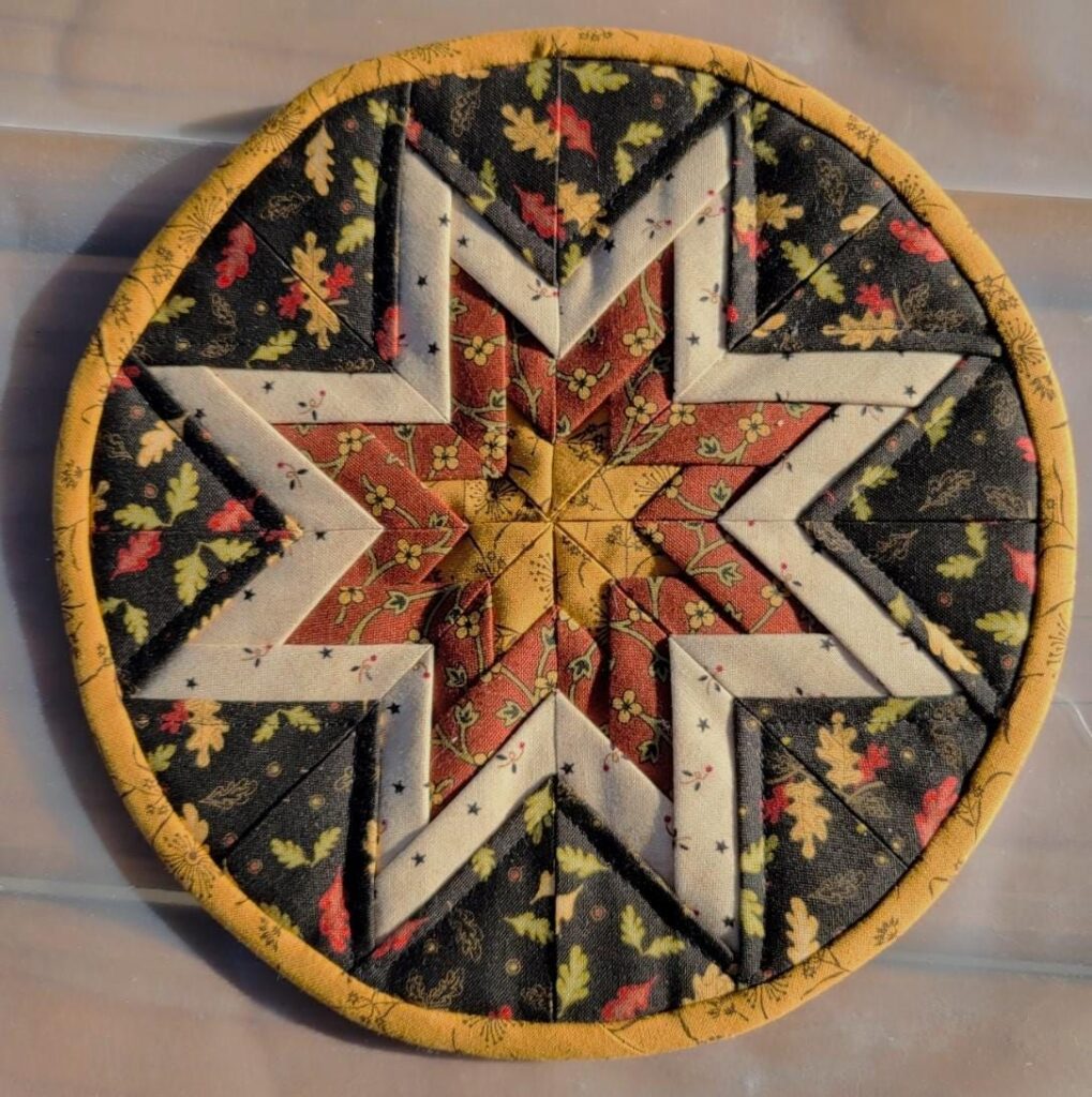 It’s a quilting technique where fabric squares are folded and layered to form a three-dimensional star pattern. It’s both decorative and functional.