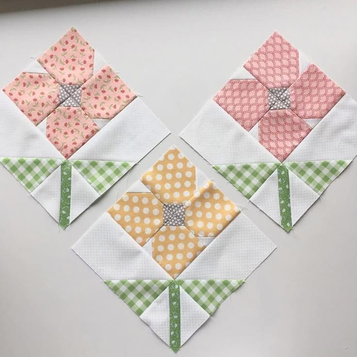 The defining feature of a patchwork flower block is its structured yet organic appearance. While the block relies on precise measurements and straight seams, the finished design evokes the softness and movement of real flowers.