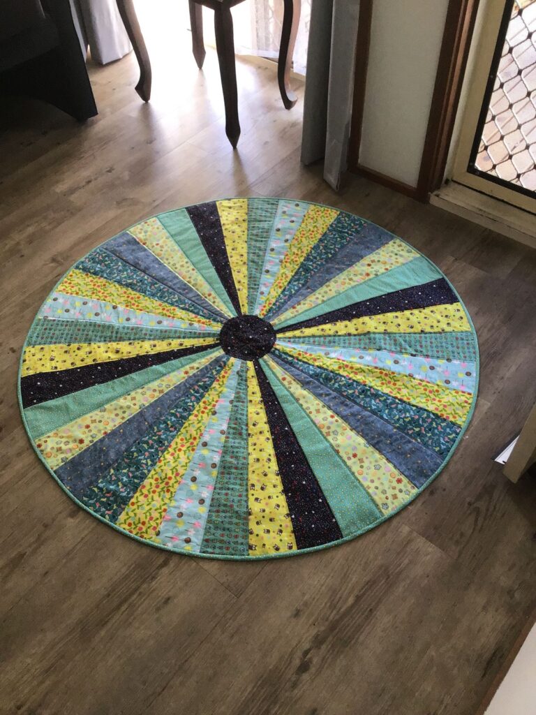 Finally, always test your design before final assembly in this Round patchwork rug tutorial. Lay out your pieces and adjust them until you are satisfied with the overall look.