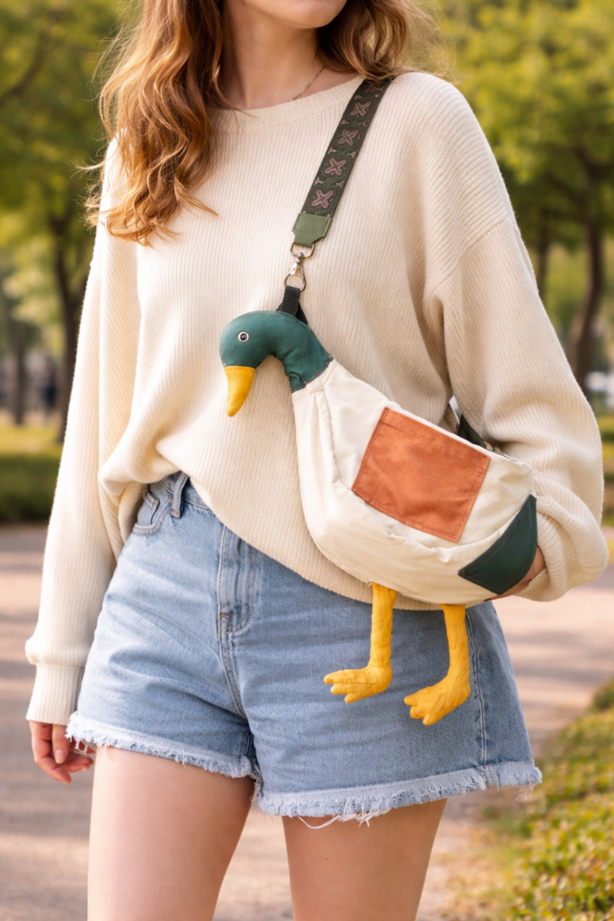 For personal use, Sewing a Duck Cross Body Bag results in a lightweight and practical bag that adds personality to everyday outfits. It can be used for casual outings, walks, or special occasions where a playful accessory is desired.